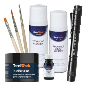 Entfettungslösung zur Vorbereitung des natürlichen Fußnagels bei Nagelmodellage mit TecniFoot.