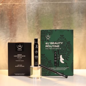 Este estuche especial contiene tres productos TNS para resaltar y realzar la mirada: un paquete de 5 pares de parches oculares desechables paratonificar, drenar e hidratar el contorno de los ojos, un delineador de ojosnegro resistente al aguaparaun maquillaje de larga duración y una máscara de pestañas 2 en 1 paradefinir y dar volumen a todo tipo de pestañas.