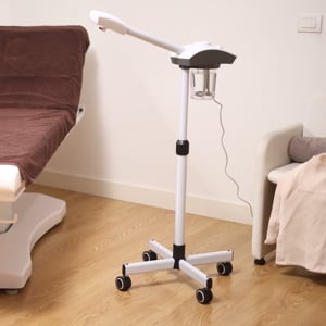 El vaporizador facial profesional Vaporsteam Ozono con soporte es un instrumento eficaz para la limpieza profunda de la piel. Gracias a la nebulización del vapor de agua combinada con la función de ozono, abre los poros, elimina las impurezas y favorece la absorción de los principios activos. Compacto, seguro y regulable en altura, es perfecto para el uso diario en cabinas de estética.