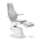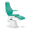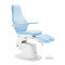 Fauteuil de pédicure équipé d'un moteur électrique pour le réglage de la hauteur de l'assise, synchronisé avec le mouvement de Trendelenburg et commandé et réglable par une commande au pied.