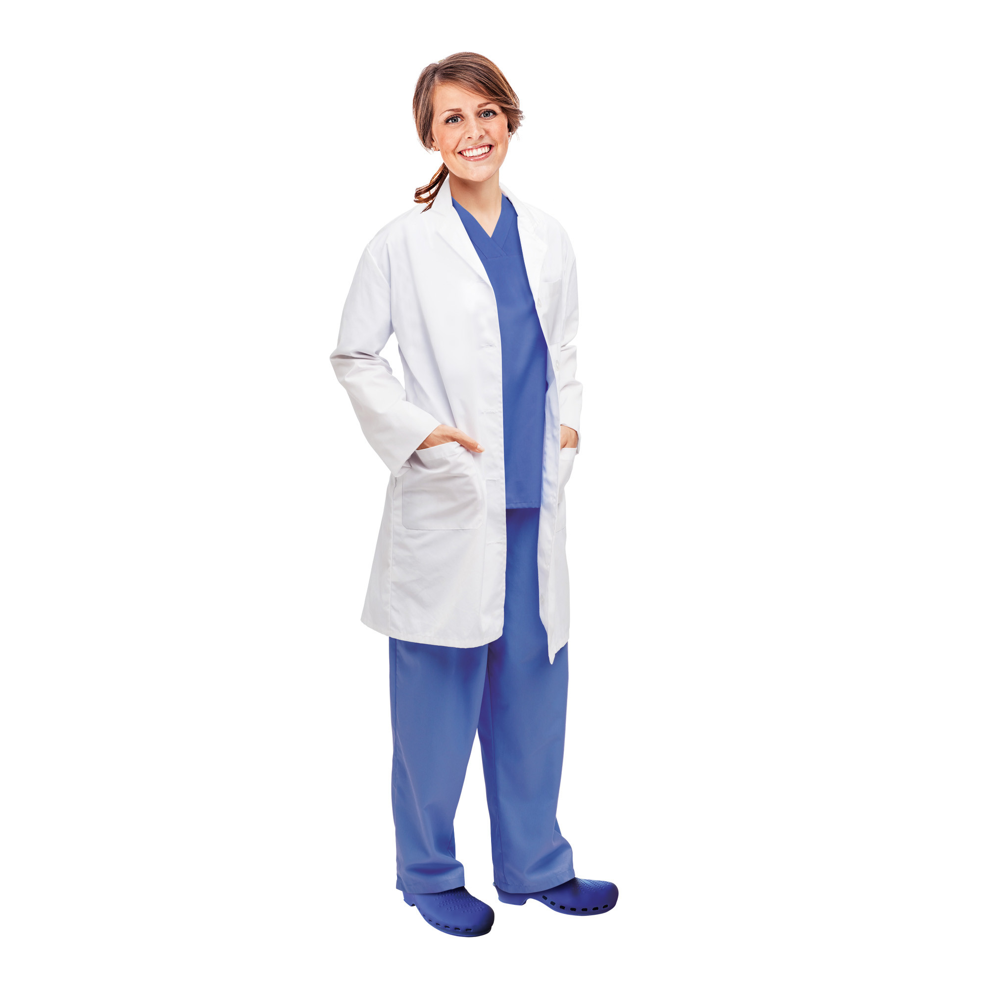 Blouse medicale professionnelle pour femme en pur coton blanc.